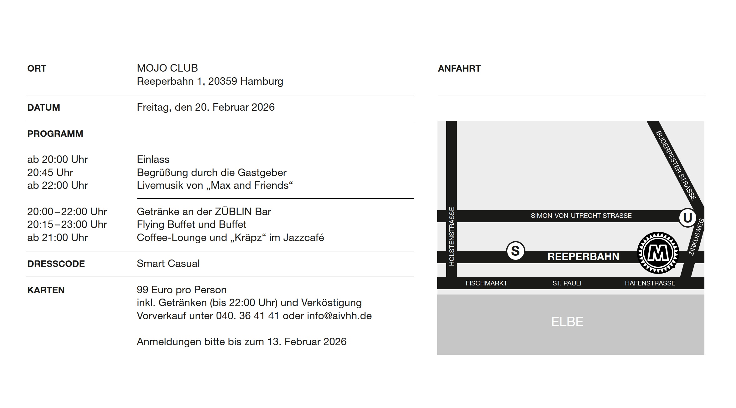 Vorverkauf unter 040. 36 41 41 oder info@aivhh.de